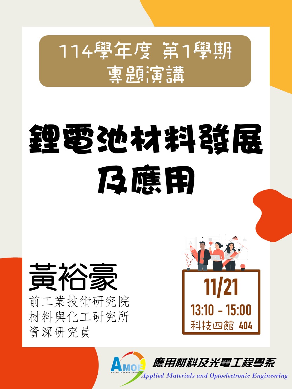 演講人來自: 前工業技術研究院 材料與化工研究所