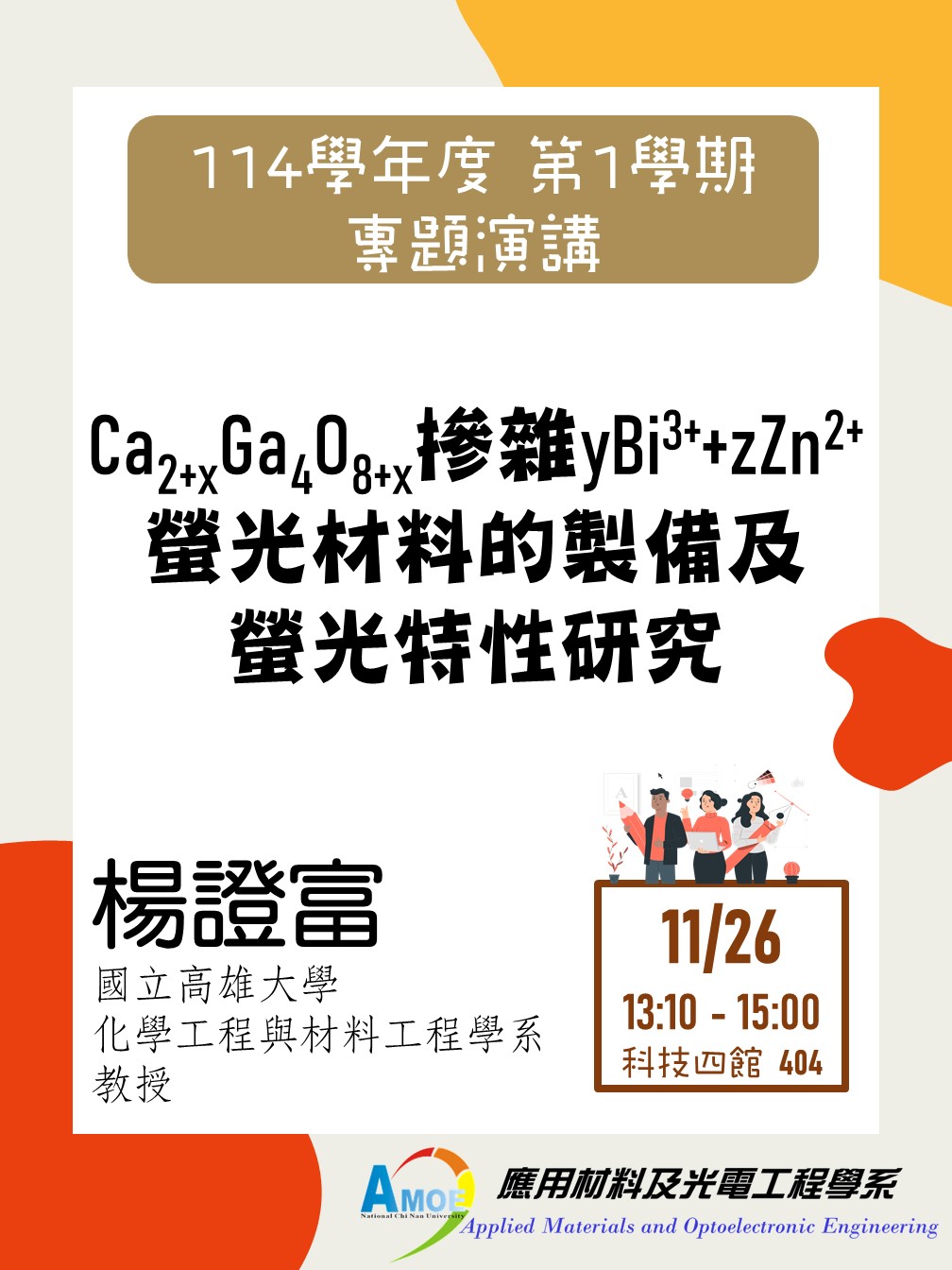 演講人來自: 國立高雄大學化學工程與材料工程學系